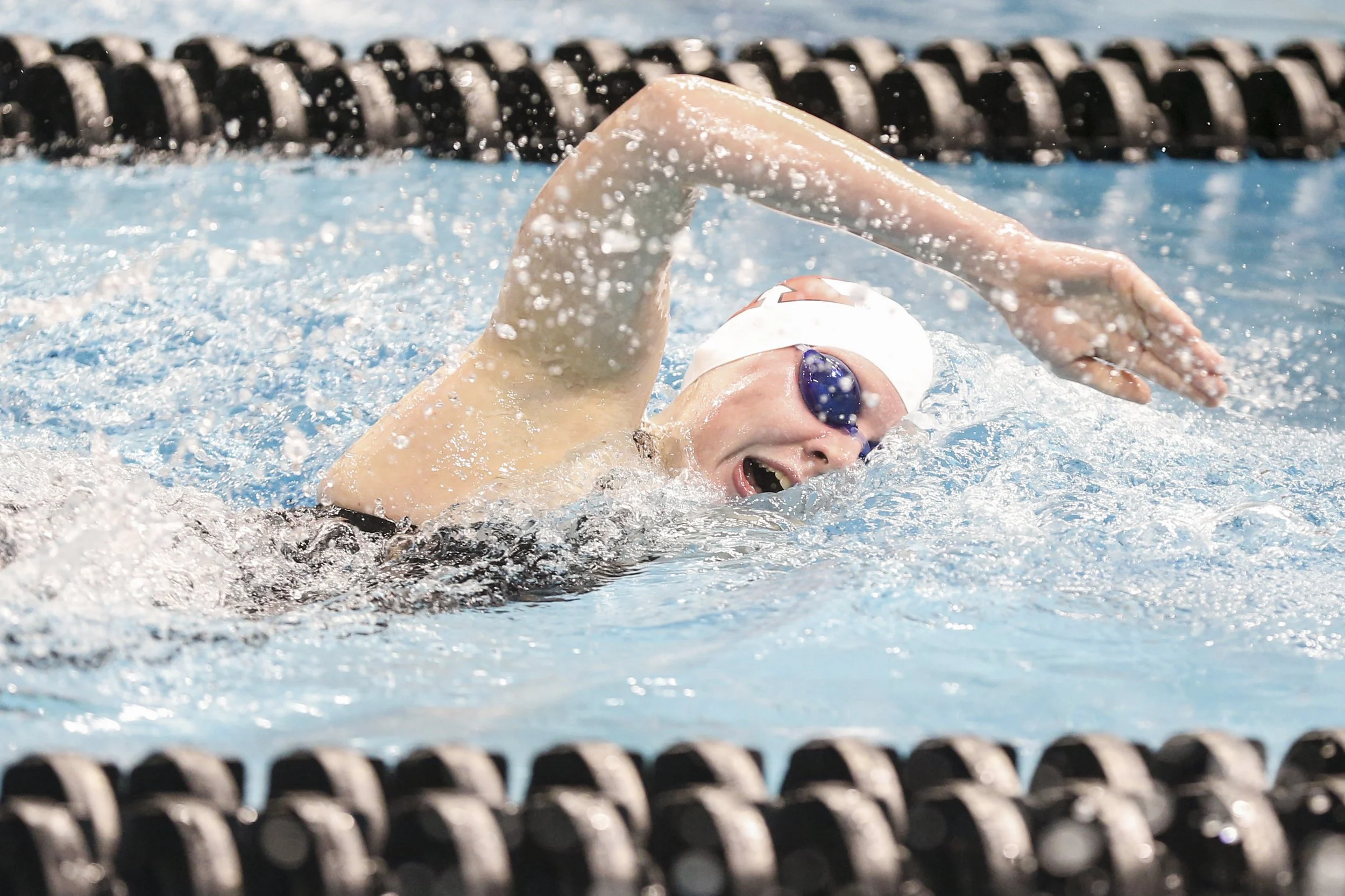 Schick powers her way to a personal best in her secondary stroke, the 500m freestyle (Photo credit: Rutgers Athletics)